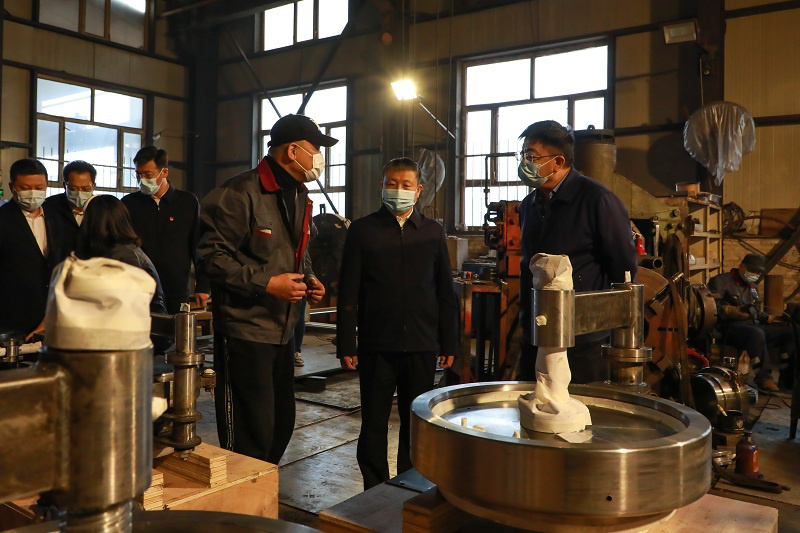 在牡丹江市金環石化設備有限公司,高忠遠同志深入生產車間檢查安全生產、隱患排查、疫情防控等措施落實情況,向企業員工宣講省十三次黨代會精神,并認真聽取企業歷史沿革、生產經營、經濟效益等情況介紹,了解企業發展面臨的問題和困難,對企業安置殘疾人就業給予充分肯定和高度贊譽。他指出,金環石化是由國有企業轉制而來的股份制民營企業,是目前國內唯一一家專門生產快開盲板的廠家,產品銷售全國各省、市、自治區以及各大油田,并遠銷東南亞、中東地區,是我市優秀民營企業的代表和典范。他強調,推動牡丹江全面振興全方位振興,工業要率先振興。企業要在學習貫徹省十三次黨代會精神上下真功夫、實功夫,按照省黨代會關于“八個振興”,特別是產業振興和 “換道超車”部署要求,搶抓新一輪科技革命和產業變革機遇,勇于創新、敢于突破,切實把省黨代會精神轉化為指導生產、推動企業發展的強大動力。要全面落實安全生產主體責任,牢固樹立紅線意識、底線思維,建立健全全員安全生產責任制,進一步筑牢安全防線。他要求,轄區黨委政府特別是相關部門要以“能力作風建設年”活動為契機,針對企業發展痛點難點,不斷深化紓困解難措施,用心用情用力當好企業發展服務員。屬地公安機關要充分發揮職能作用,依法嚴厲打擊妨礙企業生產經營違法犯罪活動,常態開展安全生產、疫情防控工作督導指導,全力保障企業合法權益和安全生產。